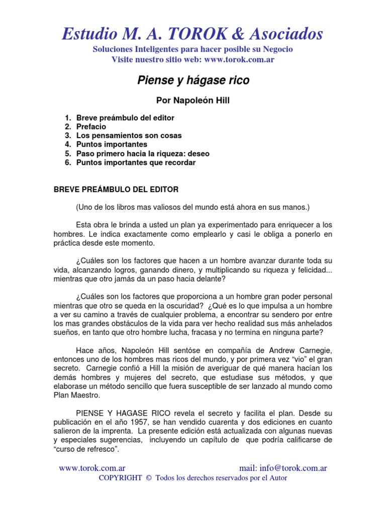 If you are the copyright owner for this file, please report abuse to 4shared. Please copy and paste this embed script to where you want to embed. Read piense y hagase rico / think and grow rich: Piense y hágase rico es un libro práctico. Así, piense y hágase rico es una obra diseñada para arrastrar al triunfo, entendido no sólo como triunfo económico, sino, sobre todo, como logro de íntima satisfacción que permite el equilibrio personal.